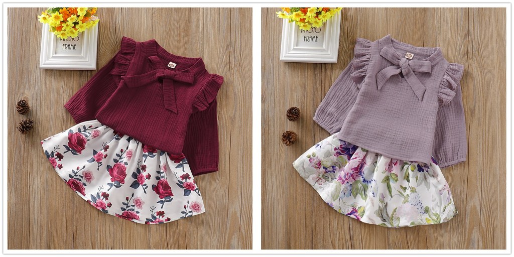 This floral print set is beautiful and stylish, in two colors, perfect for a sister outfit.