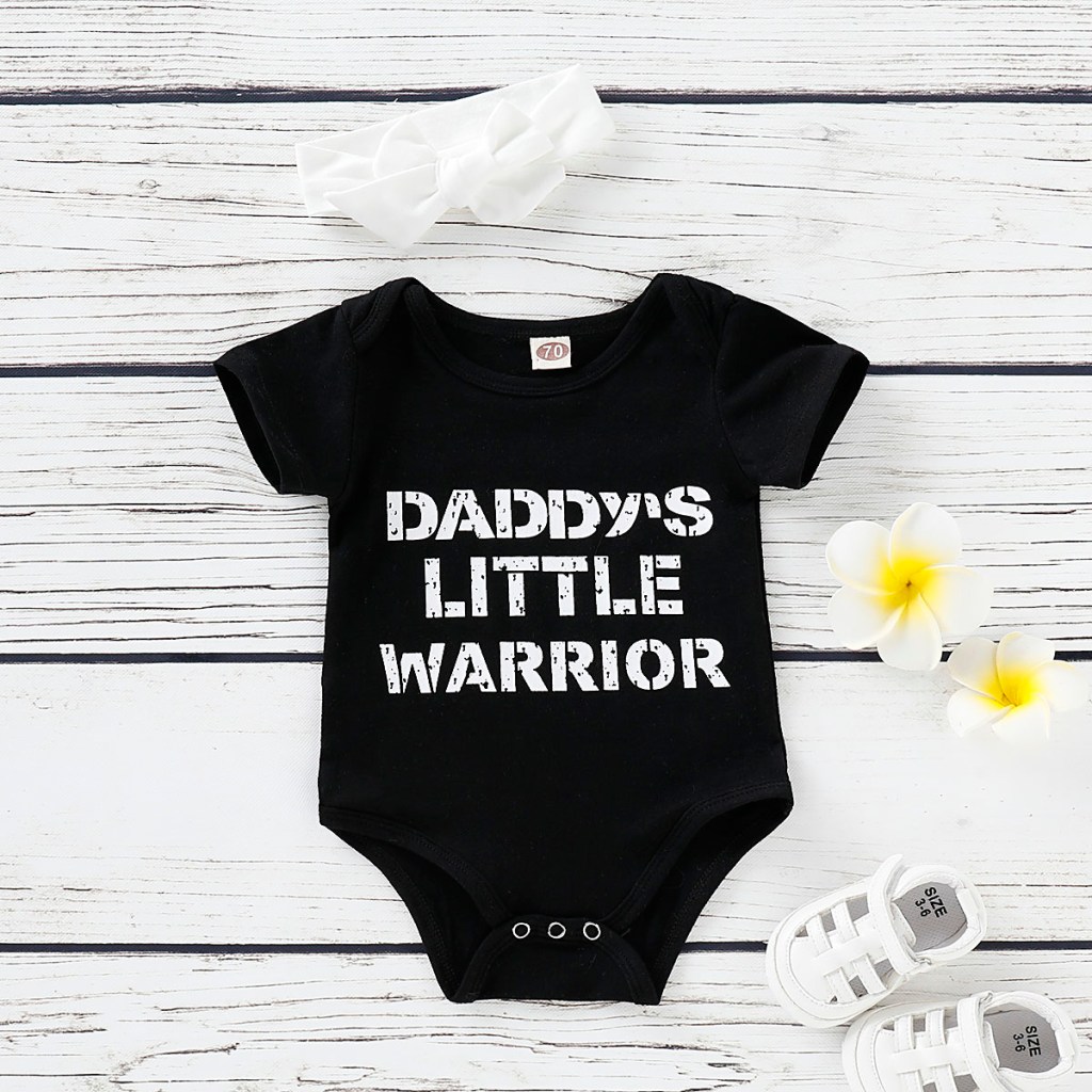Now, this little warrior romper fits our father’s gift to our new baby. This romper is also perfect for a photo shoot of the newborn whit her father. It is comfy and cute. It has inseam buttons for a different look. This is a must to have romper set in her closet.