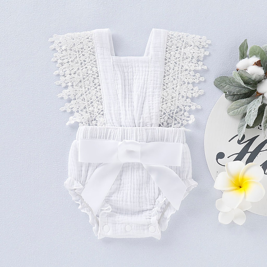 White is the best color to dress your newborn in. White will give your peacefully sleeping newborn, a more peaceful touch. A color your baby will look cute and sweet in. Your baby is also going to look stylish in this romper as this romper is way more stylish than any in the collection. This cute white baby romper jumpsuit has two straps tied into a bow which gives this romper a completely fresh look. It’s extremely comfortable and you can make them wear this outdoor.